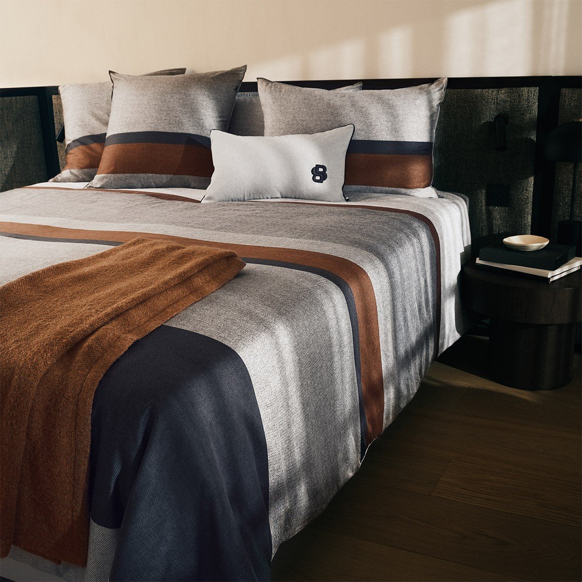 O cetim é feito de algodão de alta qualidade, com aparência luminosa, e é renomado na Boss pela sua maciez, sedosidade e maleabilidade.