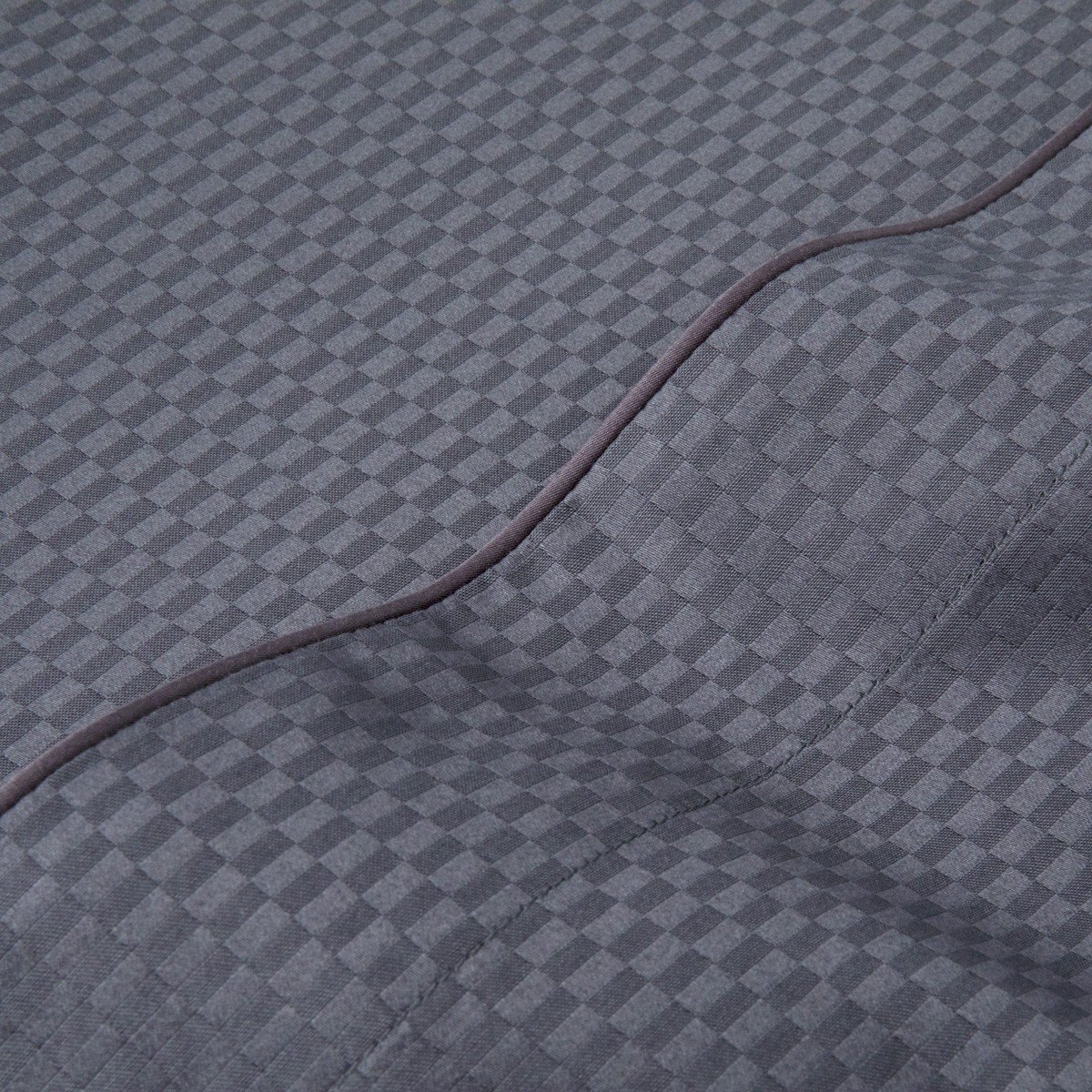 Uma geometria sóbria, sublinhada na fronha com tubulação coordenada. A composição em Jacquard entrelaçada com micro revestimento, cria um contraste entre fosco e brilho. Peça com toque macio e acetinado.
