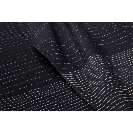 Tomando emprestados os códigos icônicos da marca, este lençol de cima é estampado em cetim de algodão. As faixas rítmicas seguem umas às outras, um salto no alinhamento engana os olhos, criando um efeito ótico surpresa.