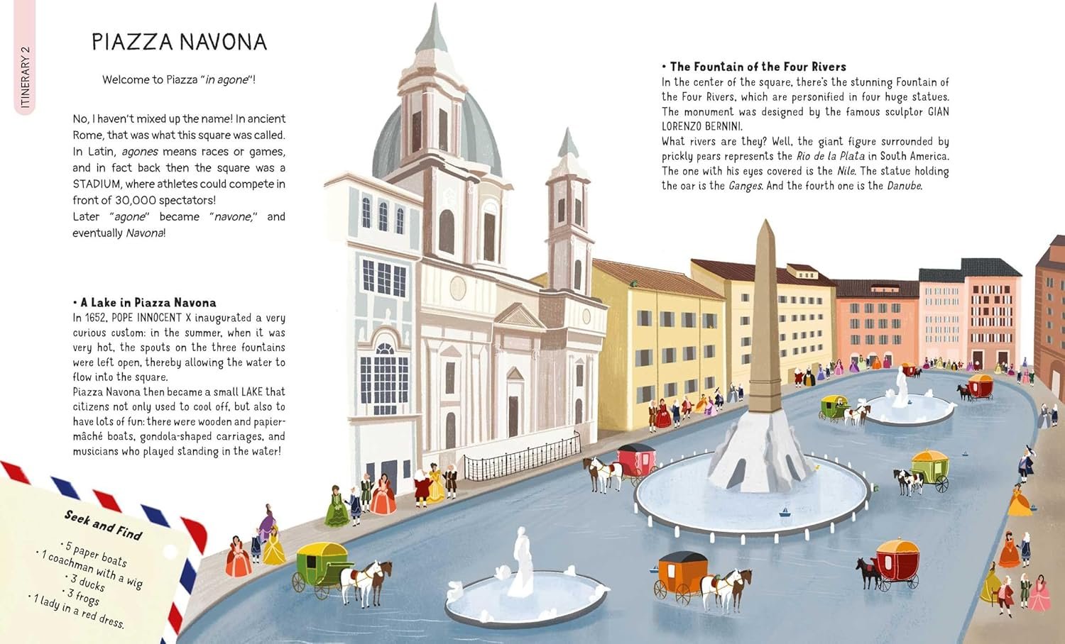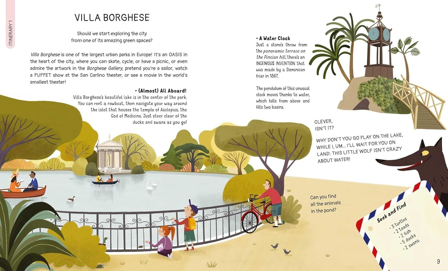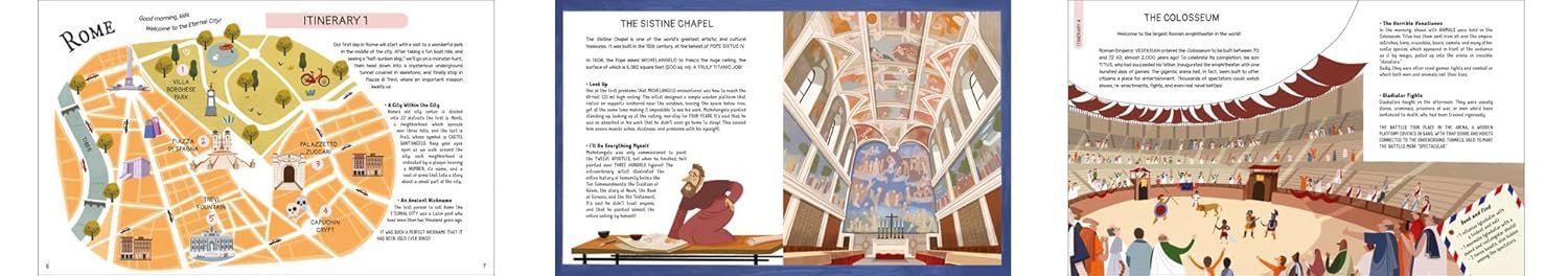 As crianças podem explorar Roma com este divertido guia de viagem feito especialmente para elas! A curiosidade infantil é inata e aumenta ainda mais quando se viaja. Com este guia infantil, elas podem visitar pontos turísticos populares de Roma, como o Coliseu, o Panteão e a Fontana di Trevi. O livro é dividido em diferentes roteiros e inclui informações sobre cada local icônico visitado. Pode ser usado como inspiração para viagens ou para levar em uma viagem real a esta cidade histórica.