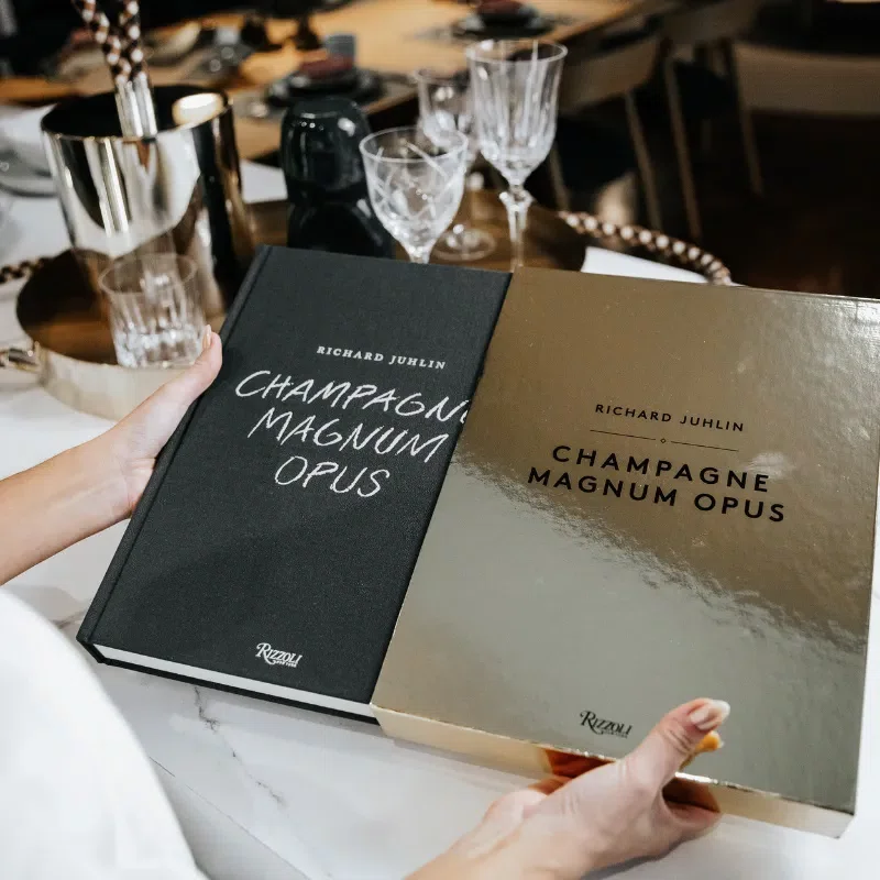 Richard Juhlin, o maior especialista em champanhe do mundo, leva os leitores a uma viagem pela história da bebida, pelos principais produtores de champanhe e pela arte de degustar. Soberbamente fotografado por Pal Allan, este livro retrata paisagens de tirar o fôlego em Champagne, fotografias históricas do mais prestigiado e antigo caveau, bem como outras imagens que capturam o estilo de vida do champanhe. Dez receitas exclusivas do renomado chef sueco Tommy Myllymaki, perfeitas para harmonizar com uma taça de champanhe, estão incluídas nesta publicação exclusiva. O volume inclui importantes estatísticas de champanhe, números de telefone e endereços de milhares de produtores de champanhe e um glossário. Ele também inclui descrições detalhadas e pontuações de 13.900 champanhes avaliados até o momento pelo autor. Em sua décima publicação, Juhlin resume, pela primeira vez, tudo o que aprendeu sobre champanhe em uma capa dura lindamente embalada com uma elegante caixa dourada.