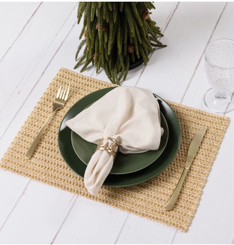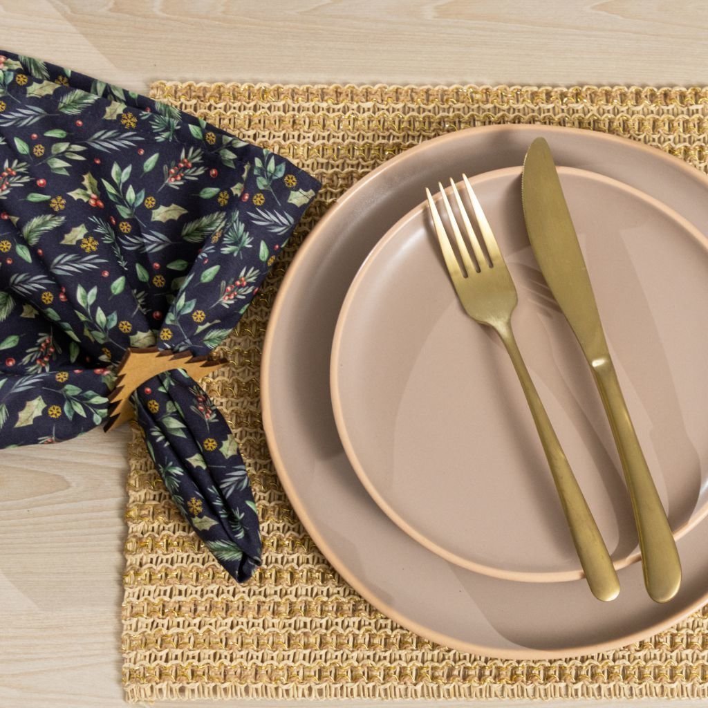 O papel utilizado nesse jogo americano confere uma base leve e flexível, facilitando o manuseio e a colocação na mesa. A juta, por sua vez, adiciona um toque rústico e charmoso, criando um contraste interessante com o branco e dourado. O poliéster, conhecido por sua durabilidade e resistência, garante a longevidade das peças.