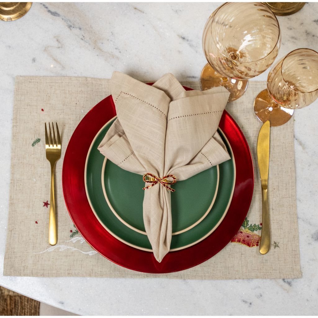 Prepare sua loja para esta época especial e garanta já o Jogo Americano, composta com uma mistura de poliéster e linho, o Americano combina durabilidade com uma aparência sofisticada. Sua tonalidade natural traz um toque de simplicidade e elegância à sua decoração de Natal.