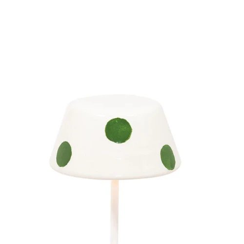 Marca Zafferano Modelo Swap Mini com Cúpula em Cerâmica Material Alumínio pintado e Cúpula em Cerâmica Acabamento Branco com Cúpula Branco e Verde Composição 1 Luminária e 1 Cúpula Medidas * Luminária: Ø 10cm - A 30cm * Cúpula: A 4cm - Ø Base: 8,5cm - Ø Topo: 5,7 cm Instruções * Recarregar na base de contato conectada à energia. * Em ambientes externos, utilize a luminária fora da base de carregamento. * A cúpula acompanha imã para encaixe. * Para limpeza, utilize pano macio e seco, sem produtos abrasivos. * A luminária também pode ser utilizada sem a cúpula.