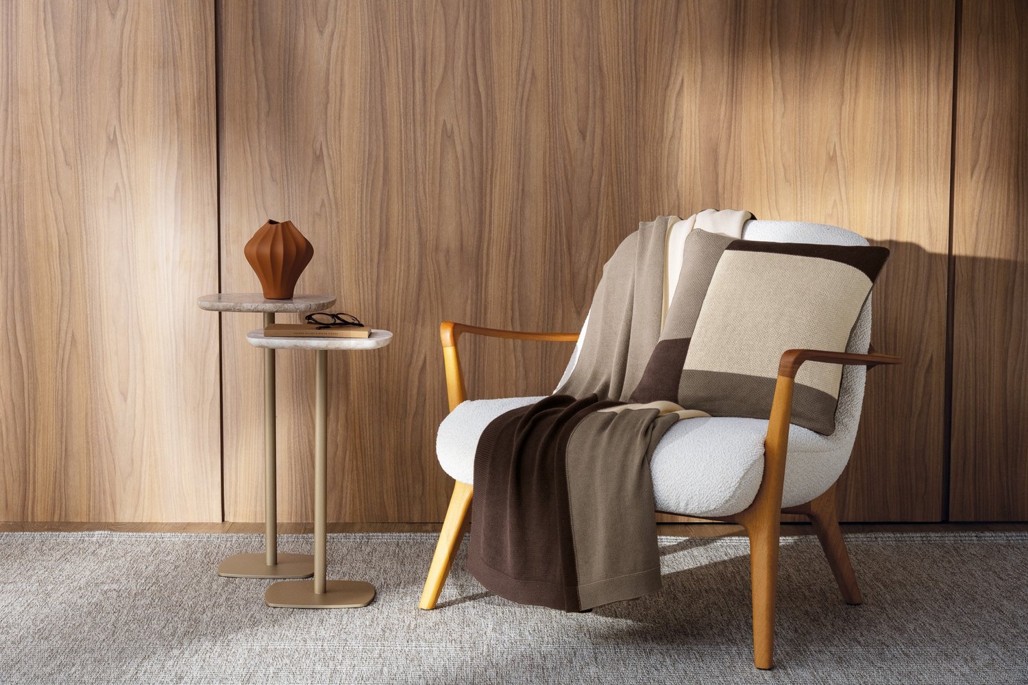 Criando um visual atual e harmonioso, a manta Aprite valoriza as linhas contemporâneas, combinando bege claro com tons de marrom e trazendo aconchego sem perder o estilo, em diferentes ambientes e propostas. Deixese encantar pela sofisticação e transforme o cotidiano.