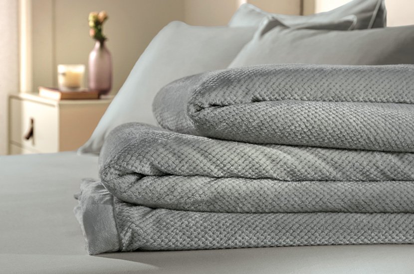 Acabamento: Toque super macio; Cobertor aveludado em tecido Flannel fleece com texturas com bordo de 4cm; Cantos quadrados