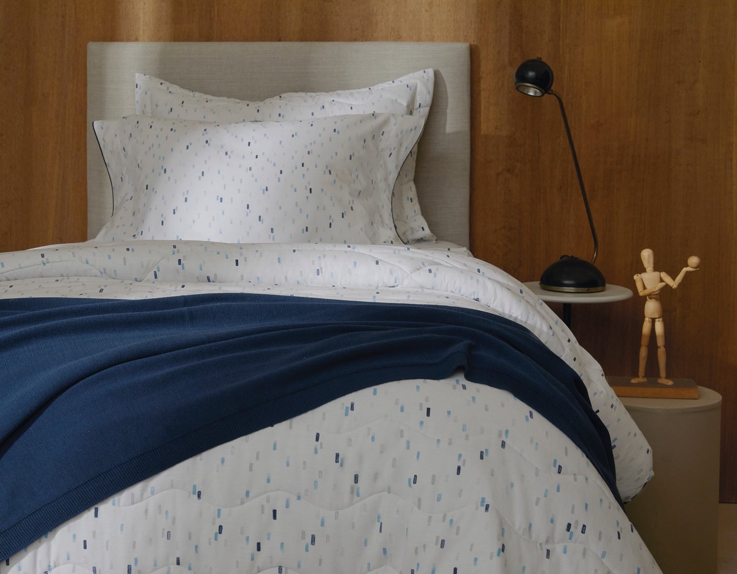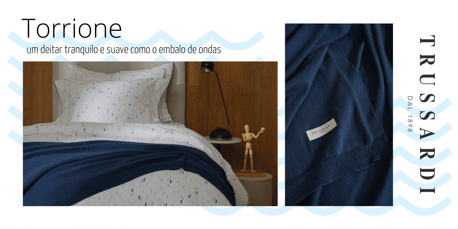 Saído das profundezas do mar Tirreno, encanta com seu tom azulado. A manta Torrione tem a capacidade de acolher, remetendo a um deitar suave e calmo como o embalo das ondas. Com sua confecção em tricot 100% algodão, confere maciez e toque confortável, como um abraço aconchegante. Transforma, com seu caimento diferenciado, o ambiente que for colocada. Um verdadeiro presente no seu dia a dia.