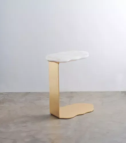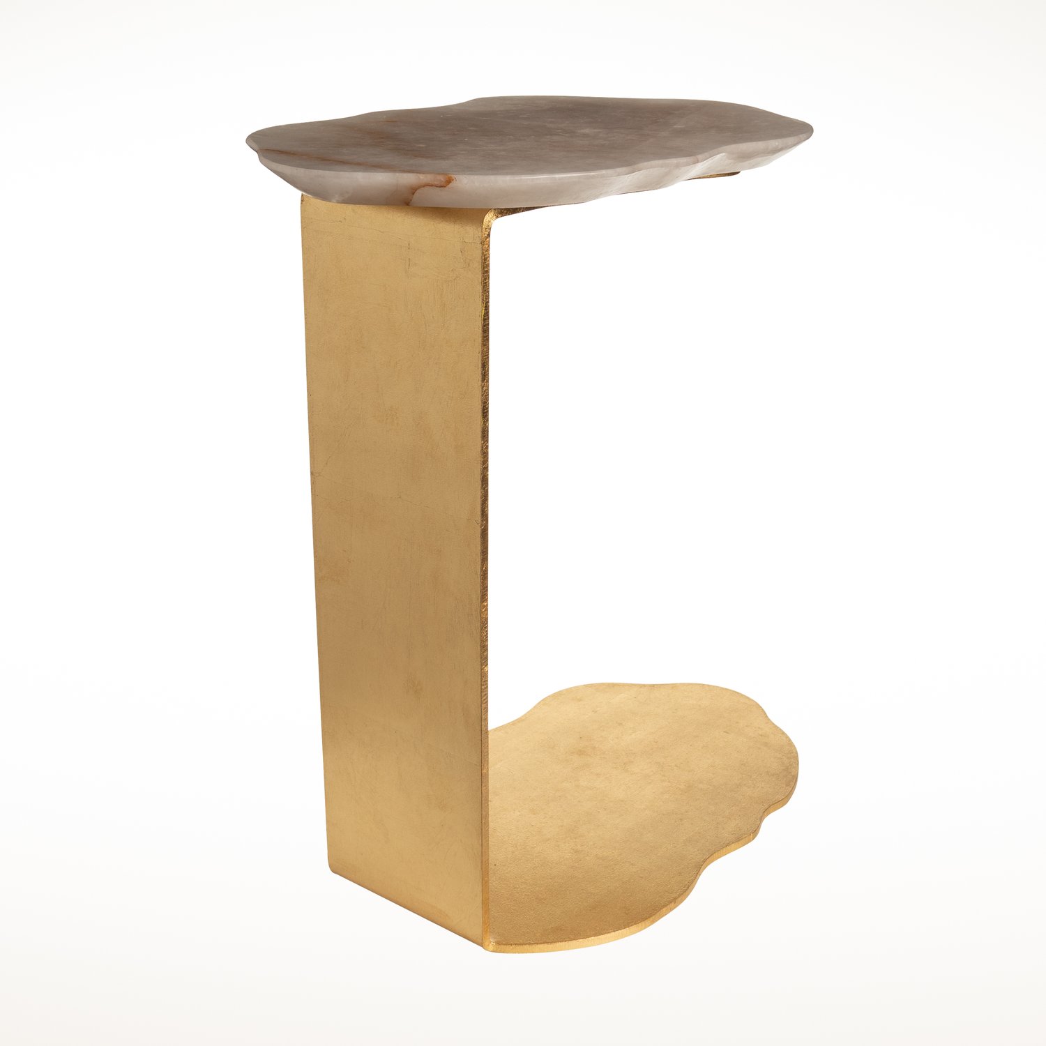 Material: Aço carbono com folha de ouro e pedra quartzito cristallo