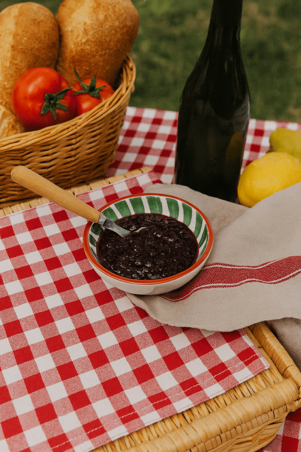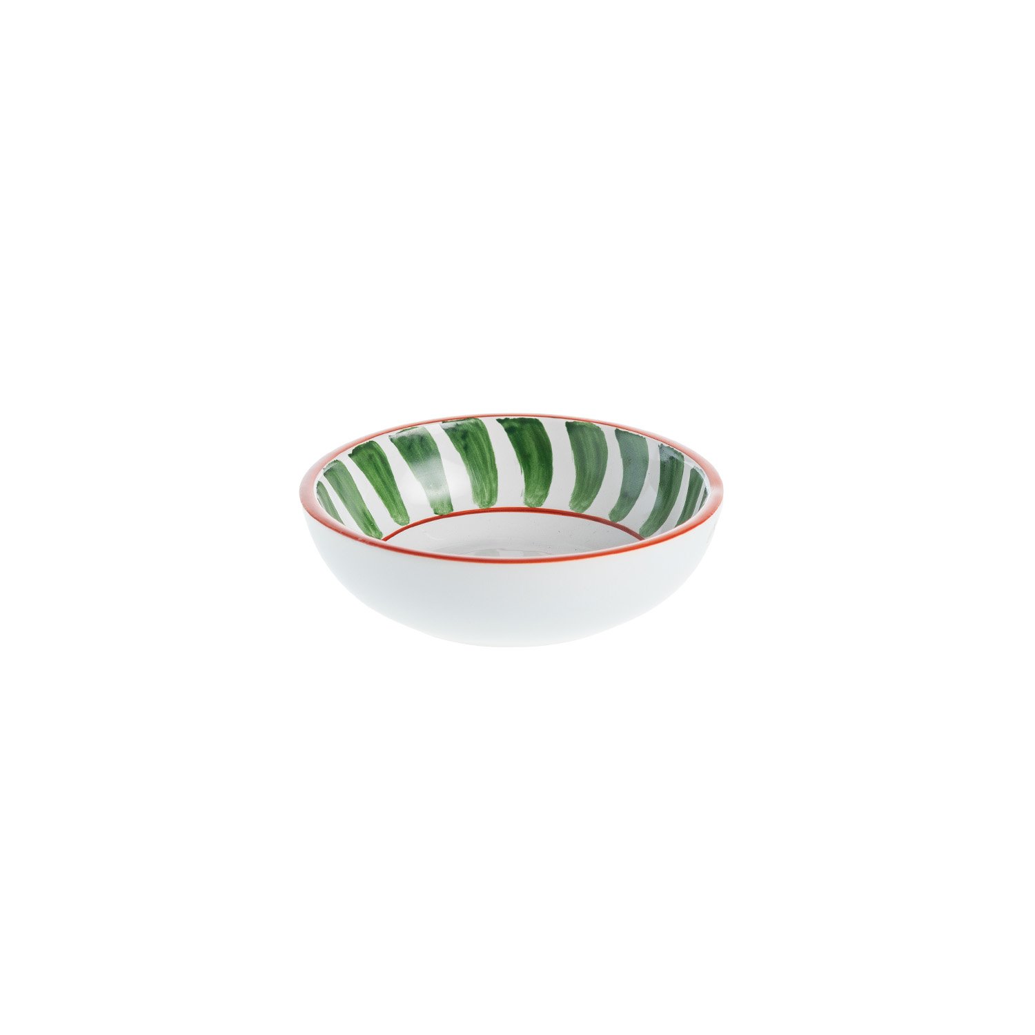 Mini bowl em cerâmica, ideal para azeite, molhos ou para servir aperitivos. Produzido em cerâmica artesanal com pintura manual na cor verde com detalhe em vermelho.