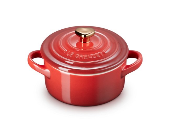 Mini Cocotte Pegador Coração Dourado Le Creuset Vermelho 250 ml