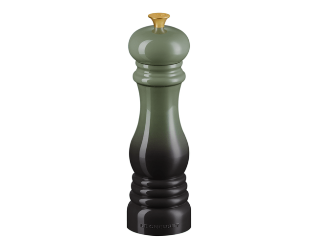 Informações do Produto Marca Le Creuset Cor Thyme com Pino Dourado Material Plástico ABS Composição Moedor de Pimenta Quantidade de Peças 1 Medidas A 20,8cm - L 6,2cm - P 6,2m Garantia 10 anos