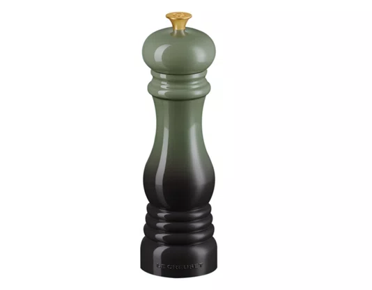 Informações do Produto Marca Le Creuset Cor Thyme com Pino Dourado Material Plástico ABS Composição Moedor de Sal Quantidade de Peças 1 Medidas A 20,8cm - L 6,2cm - P 6,2m Garantia 10 anos