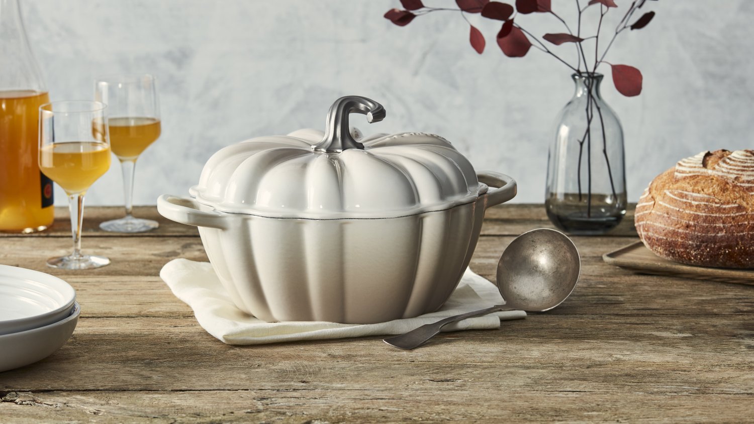 Inspirado nas cores outonais, a Panela Abóbora de edição especial, será ideal para decorar sua mesa. O design exclusivo apresenta o formato de uma abóbora, com os mais ricos detalhes, como o seu pegador de aço inox esculpido à mão.