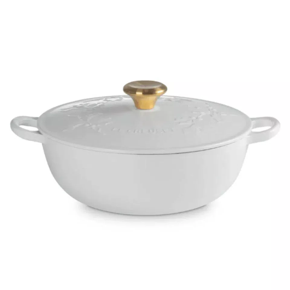 INFORMAÇÕES DO PRODUTO Marca Le Creuset Cor Branco Modelo Marmita Holly Colection Formato Redonda Material Ferro Fundido Esmaltado Conteúdo 01 Panela Tamanho 26cm Modo de Lavagem Lava Louças, Lavagem a Mão