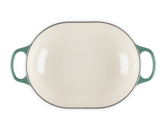 Nem redondo, nem quadrado & oval. A forma única da Panela Oblong torna uma peça de destaque agradável e oferece resultados incríveis! O design alongado e arredondado proporciona um volume generoso de 3,4 litros, para que você possa refogar, gratinar e assar à vontade. Graças as alças grandes, você pode movimentar facilmente do fogão para o forno e para a mesa. A construção em ferro fundido retém o calor para cozinhar e dourar uniformemente. Suas deliciosas criações também ficarão quentinhas à mesa por mais tempo.