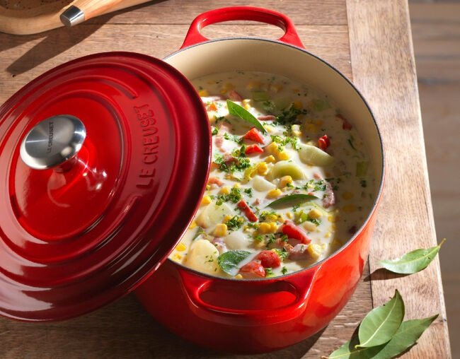 A icônica Panela Oval Signature da Le Creuset é indispensável nas cozinhas de cozinheiros domésticos e chefs profissionais. Habilmente trabalhada com ferro fundido esmaltado, a versatilidade diária da Panela Oval Signature a torna ideal para tudo, desde cozimento lento e refogado até assar, cozinhar, fritar e muito mais. A forma oval é particularmente adequada para cortes maiores de carne, frangos inteiros e para assar pães de formato oval.