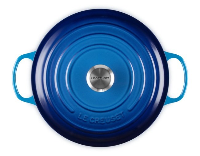 Cor: Azure Blue Tamanho: 28 cm Porções: 06 - 08 Material: Ferro Fundido Capacidade: 6,7L Fonte de Calor: Vitrocerâmico, Indução, Elétrico, Gás, Radiante, Grill, Forno Comprimento: 38 cm Largura: 30 cm Altura: 18 cm Modo de Lavagem: Lava Louças, Lavagem a Mão País de Origem: França