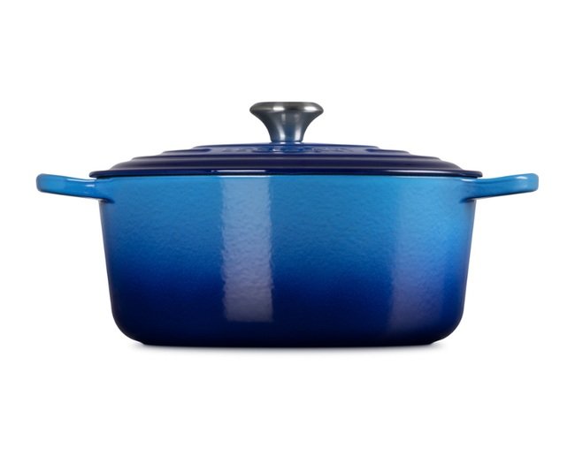 Reconhecida por sua resistência e durabilidade, o ferro fundido é o material ideal para um cozimento lento graças a sua habilidade em manter o calor e de forma homogênea. A panela Redonda Signature não precisa de pré-aquecimento e pode ser também utilizada no forno.