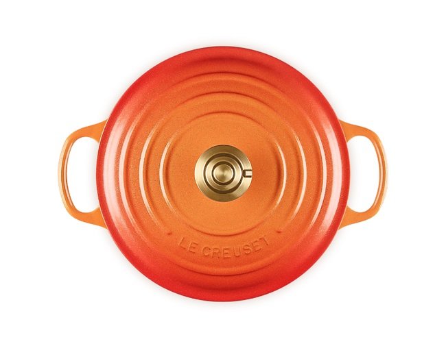 A Le Creuset apresenta Flamme Dorée, uma edição limitada que reinterpreta com sofisticação a clássica cor Flame de 1925. Um século de tradição, inovação e paixão pela culinária merece ser celebrado com um acabamento cintilante, elegante e intensamente dourado. Por isso, nossa icônica cor laranja foi enriquecida com minerais naturais em seu esmalte vitrificado, revelando reflexos dourados e luminosos que tornam cada peça única.
