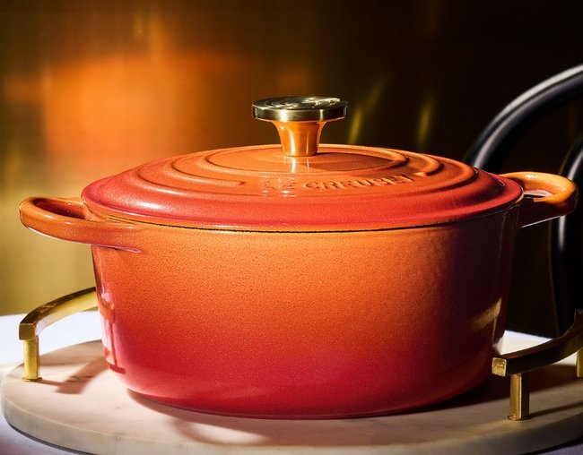 A Le Creuset apresenta Flamme Dorée, uma edição limitada que reinterpreta com sofisticação a clássica cor Flame de 1925. Um século de tradição, inovação e paixão pela culinária merece ser celebrado com um acabamento cintilante, elegante e intensamente dourado. Por isso, nossa icônica cor laranja foi enriquecida com minerais naturais em seu esmalte vitrificado, revelando reflexos dourados e luminosos que tornam cada peça única.