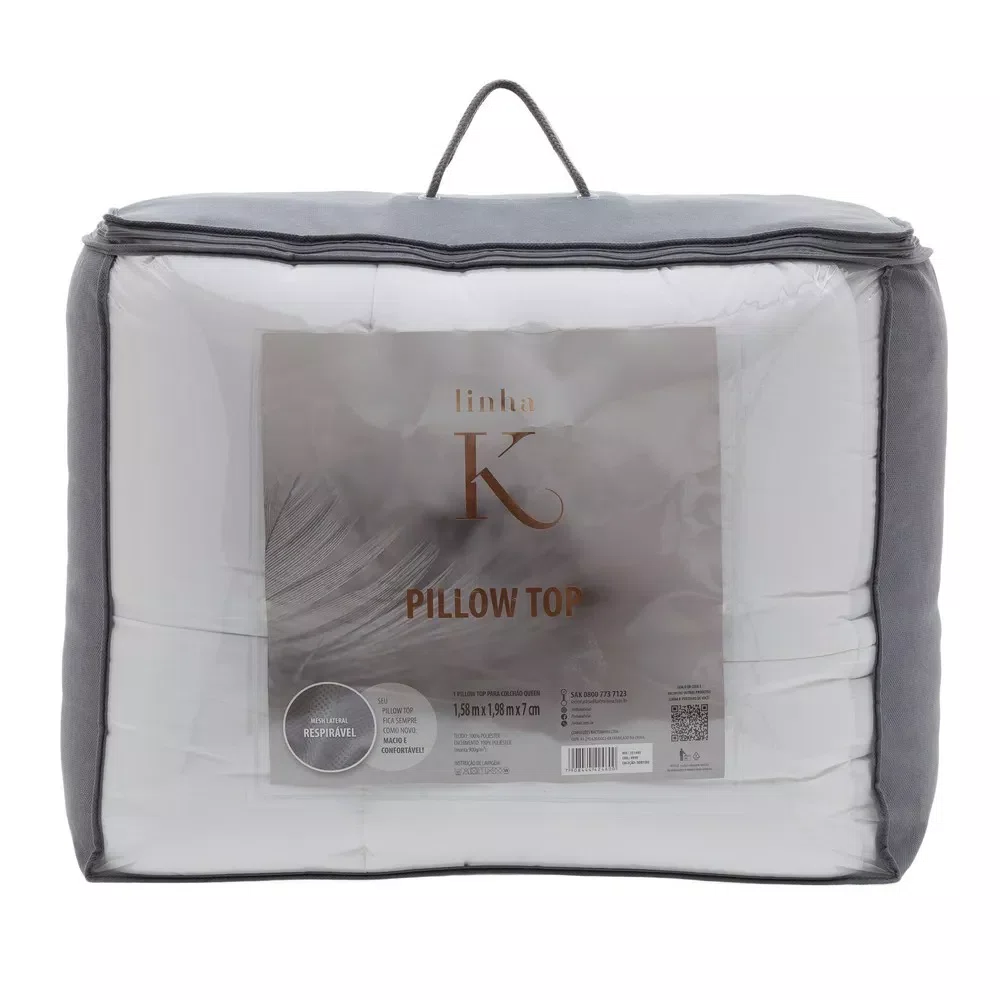 O Pillow Top King da Linha K da Kacyumara serve como uma camada extra acima do seu colchão. Além de confortável, evita os desgastes no colchão que acontecem com o tempo de uso e proporciona mais estabilidade. Com um tamanho de 1,93m x 2,03m e com 7cm de espessura, é fofinho e macio, e garante muito mais aconchego para sua cama.