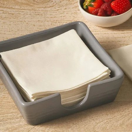 INFORMAÇÕES DO PRODUTO Marca Le Creuset Mateial Cerâmica Cor Flint Tamanho 15 cm Comprimento 15,3 cm Largura 15,3 cm Altura 5,5 cm Peso 870 g Conteúdo da embalagem 1 Porta Guardanapo Garantia 10 anos Destaques: • A cerâmica Premium é projetada para o uso diário • A superfície esmaltada facilita a remoção dos alimentos, tornando o processo de limpeza mais rápido • A retenção superior de calor mantém os alimentos quentes ou frios para servir. CUIDADOS E USO Modo de Lavagem: Lava Louças, Lavagem a Mão Seguro para micro-ondas, congelador e máquinas de lavar louça.