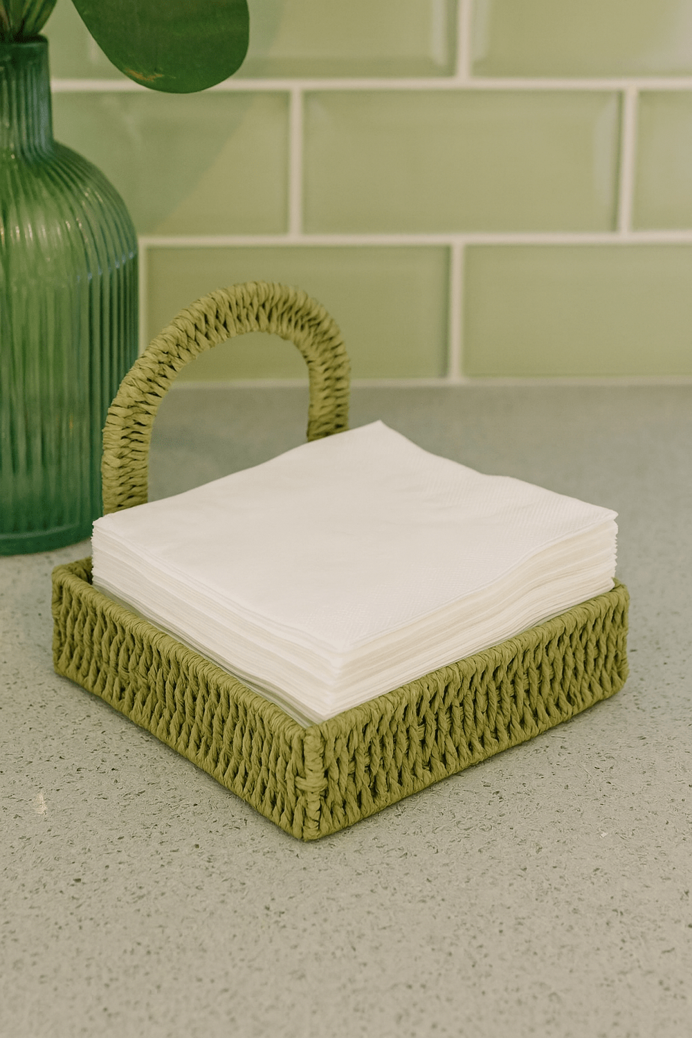 Porta Guardanapo Quadrado em Palha Verde