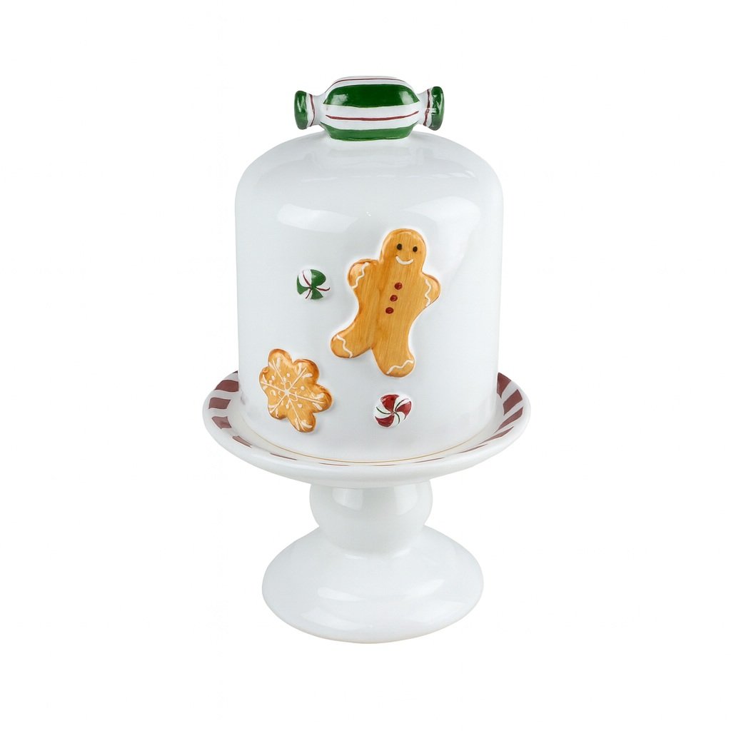 Coleção: Gingerbread Material: Cerâmica / Pintura Manual Acabamento: Alto Relevo Cores: Branco e Verde Composição: 01 Porta Panetone Circunferência: 15 cm Altura: 26 cm