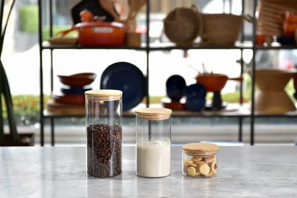 Os potes da linha Kenya Kitchen Collection são produzidos em vidro de borossilicato com tampa em bambu e anel em silicone que veda perfeitamente seu interior, armazenando e protegendo os alimentos de qualquer exposição. É Versatilidade para o seu lar!