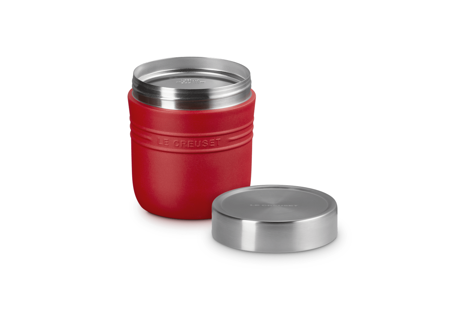 Informações do Produto Marca Le Creuset Linha On The Go Cor Vermelho Material Aço inoxidável Conteúdo 01 Pote Capacidade 500 ml Medidas Ø 10,7cm - A 12,4cm Capacidade Térmica mantém alimentos quentes por até 6 horas ou frios por até 24 horas