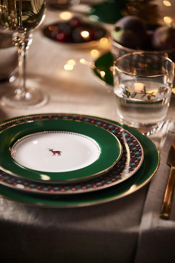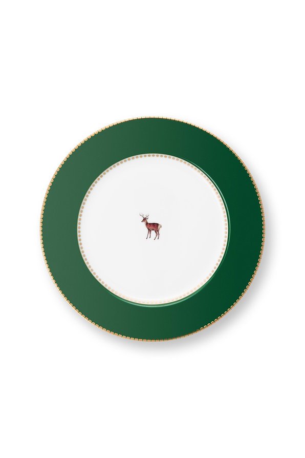 Este prato de sobremesa faz parte da coleção Love Birds. Para este outono e inverno, adicionamos uma cor verde escura divertida. Para transmitir melhor a sensação de inverno, escolhemos um cervo em vez de um pássaro desta vez. O prato de sobremesa faz uma bela combinação com o resto dos utensílios de mesa da coleção Love Birds, mas também combina maravilhosamente com a coleção Berry Blues.