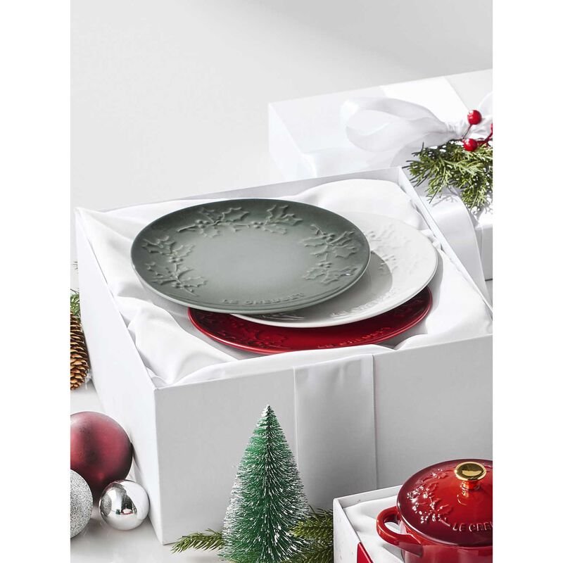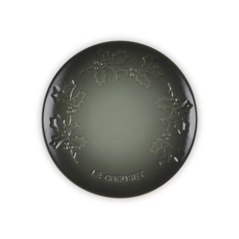 O Prato da Coleção Holly espalha alegria e estilo ano após ano. Perfeito para servir aperitivos festivos, acompanhamentos, biscoitos para o Papai Noel e muito mais, ele combina funcionalidade com charme. Feito em cerâmica premium, apresenta um delicado relevo de folhas de azevinho e acabamento em esmalte vibrante, fácil de limpar e resistente a lascas, arranhões e manchas
