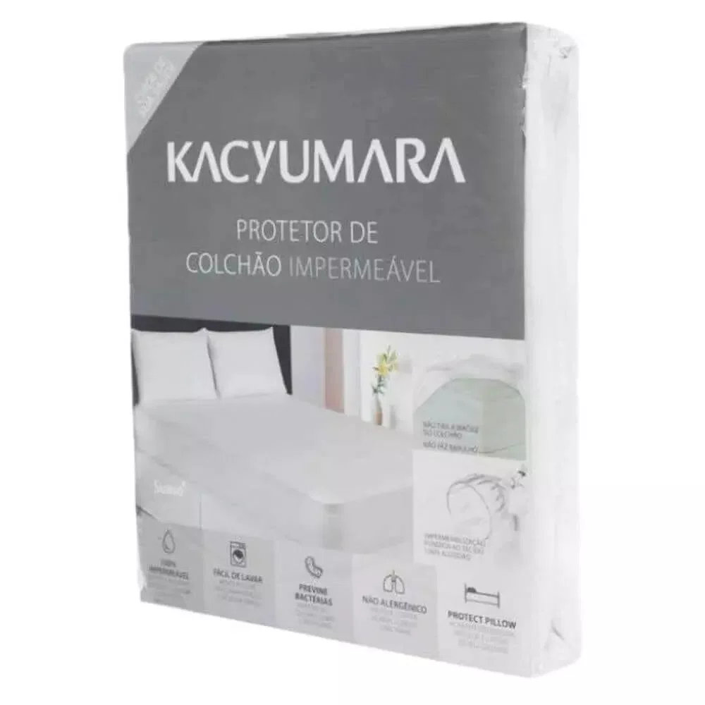 Muito mais proteção e sofisticação em seu quarto! O Protetor de Colchão da Kacyumara é 100% impermeável protegendo totalmente o colchão do suor, umidade e líquido evitando a proliferação de ácaros, fungos preservando o conforto e protegendo sua saúde. É confeccionado em 100% algodão na parte superior e 100% Poliuretano na parte inferior, não alérgico, pode ser lavado à máquina, prático, fácil de usar, não esquenta e não faz barulho, acabamento em saia, fornecendo proteção lateral ao colchão.