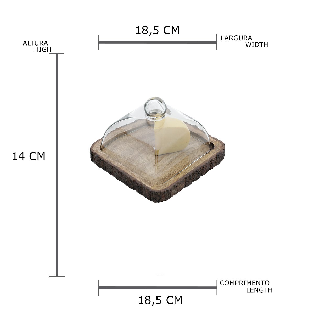 Queijeira com base de madeira e tampa de vidro, da Rojemac. Ela é perfeita para servir deixando a sua mesa ainda mais completa! Ela oferece uma superfície ideal para armazenar os mais variados tipos de queijo, pois sua estrutura com tampa, impede o contato do alimento com o ambiente externo.