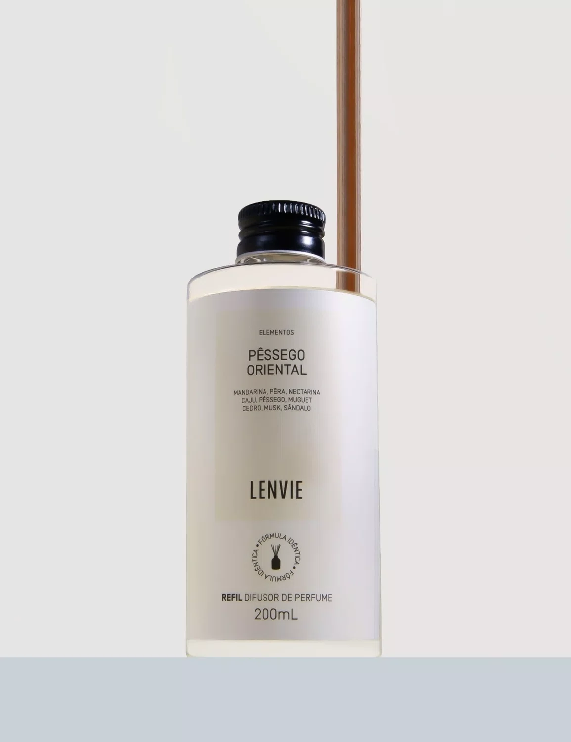 Pêssego Oriental é a primeira fragrância desenvolvida para o Rebrand da LENVIE. A fragrância foi desenvolvida pela perfumista Fanny Grau. A fruta escolhida para esse lançamento é o Pêssego, uma fruta suculenta, adocicada, aveludada e envolvente.