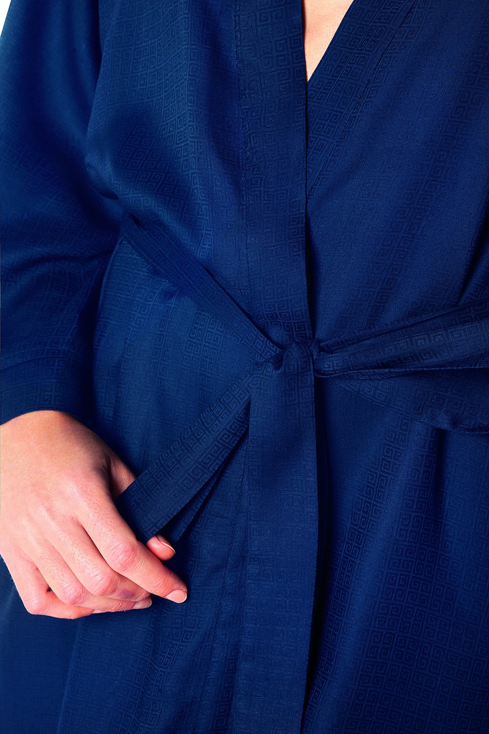 O suntuoso robe Splendore marinho envolve o corpo com o toque do jacquard de padrões gregos. Esta peça possui modelagem solta, amarração na cintura e mangas amplas, que a tornam aconchegante e sofisticada.