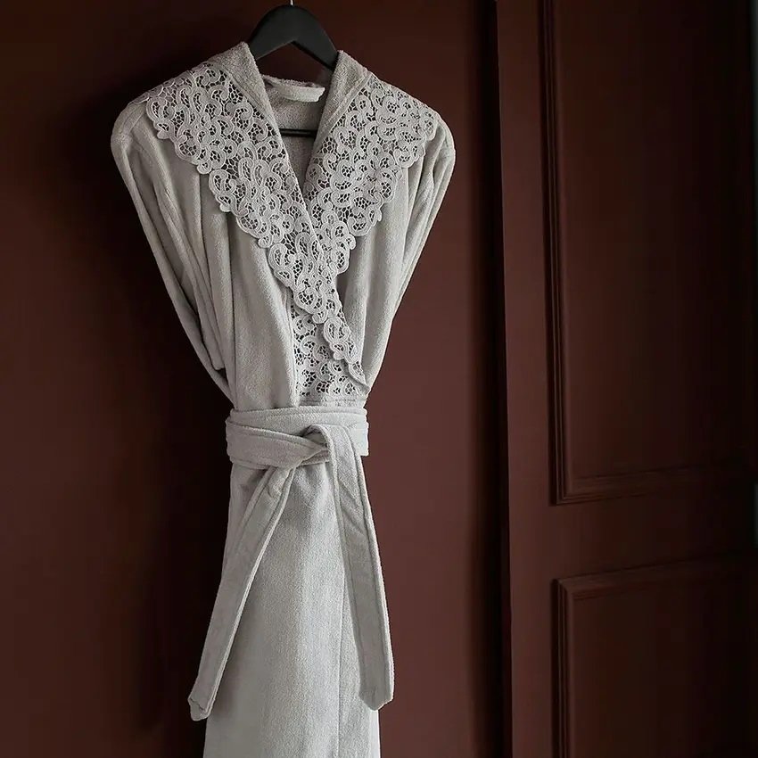 Roupão Capri M - Buddemeyer Luxus - Incrivelmente macio, aconchegante e muito especial o roupão Capri destaca-se por sua exuberante gola em renda. As formas orgânicas em cinza heritage criam sofisticado efeito 3D trazendo beleza e requinte sem igual. Em nobre algodão, o modelo muito volumoso possui toque perfeitamente macio, criado especialmente para promover experiências sensoriais inigualáveis, como um convite para sentir a elegância e a suavidade em cada detalhe. A Buddemeyer é referência em qualidade e estilo.