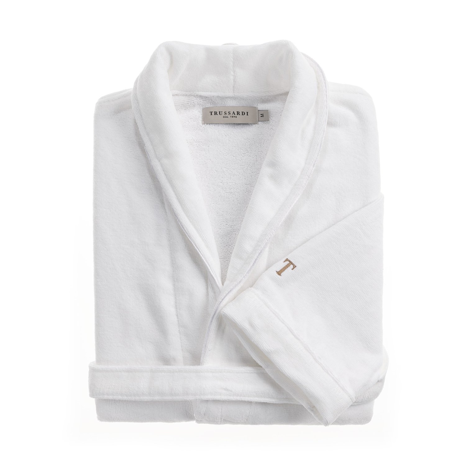 Confortável e aconchegante, os roupões Trussardi em 100% algodão, são um item indispensável para a sua rotina. Com uma nova modelagem e um cuidado aos minuciosos detalhes, a aplicação do bordado do T nas mangas assina a peça de forma elegante. O toque aveludado, fibras leves e caimento impecável fazem deste roupão um elemento capaz de criar uma atmosfera spa no seu ambiente.