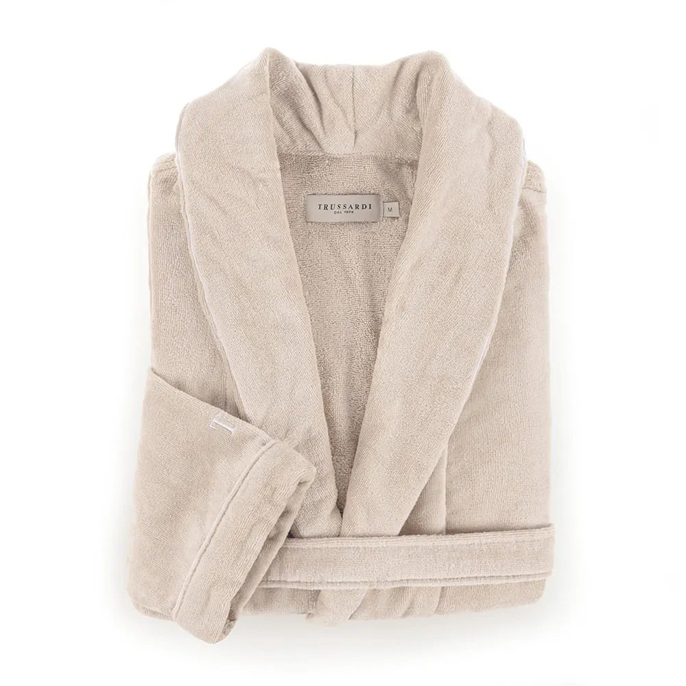 Confortável e aconchegante, os roupões Trussardi em 100% algodão são um item indispensável para a sua rotina. Com uma nova modelagem e um cuidado aos minuciosos detalhes, a aplicação do bordado do “T” nas mangas assina a peça de forma elegante. O toque aveludado, fibras leves e caimento impecável fazem deste roupão um elemento capaz de criar uma atmosfera spa no seu ambiente.
