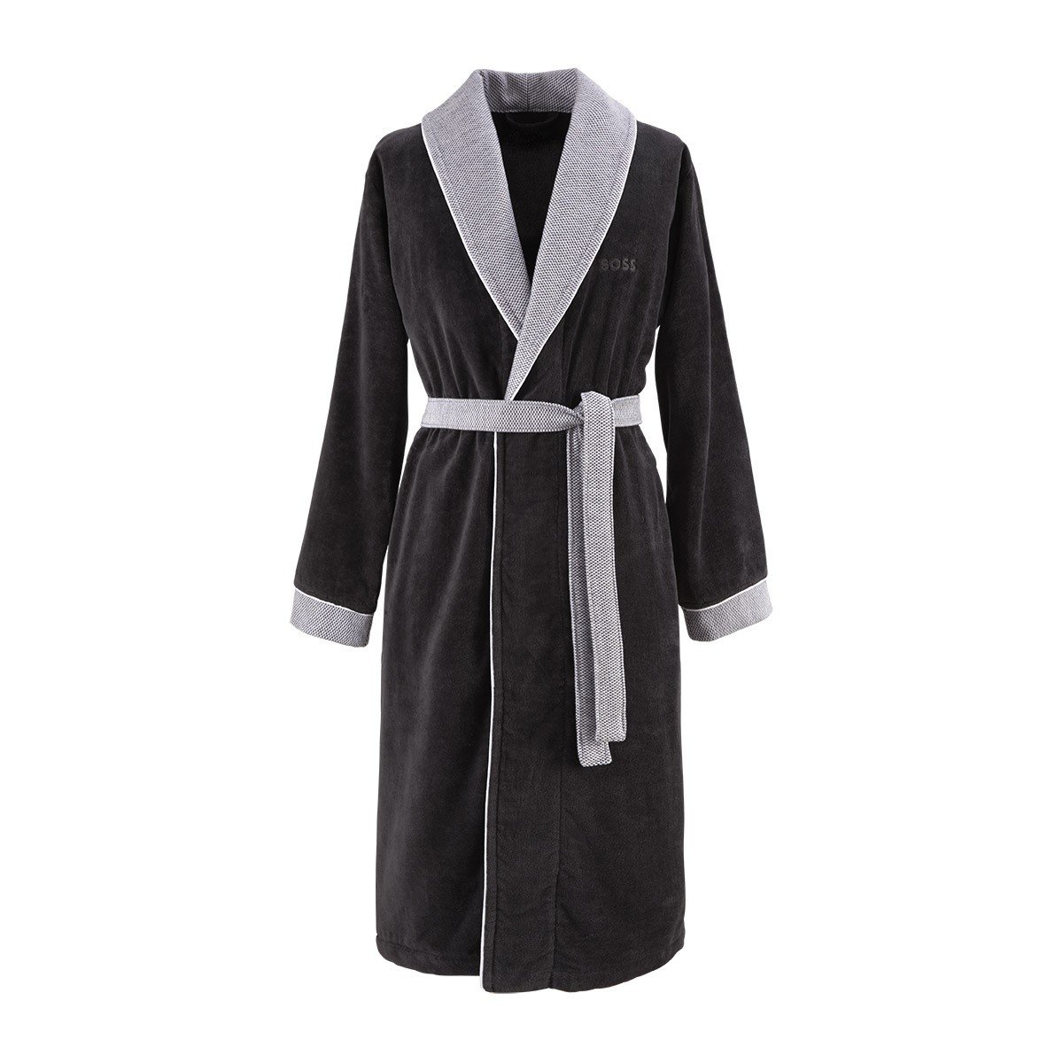 O Quimono Lord da Boss Home é simples e chique, apresenta o logotipo da Boss Home bordado em contraste ao longo de sua gola com cinto tom sobre tom. A trama de loops curtos e apertados dá ao quimono uma sensação densa e revigorante. Confeccionado em fino algodão egípcio com laços trançados para maior conforto e absorção.