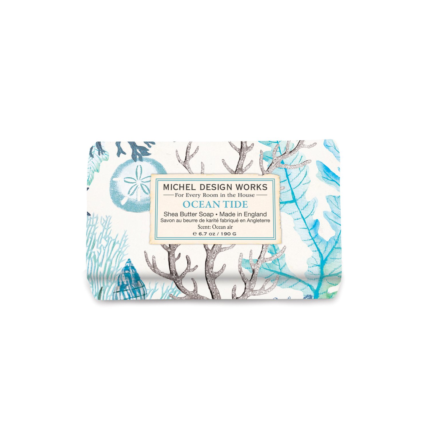 Marca Michel Design Works Origem Inglaterra Produto Sabonete em Barra Peso 189g Aroma Ocean Tide Fragrância Brisa marinha com notas de melão orvalhado e lírio do vale.