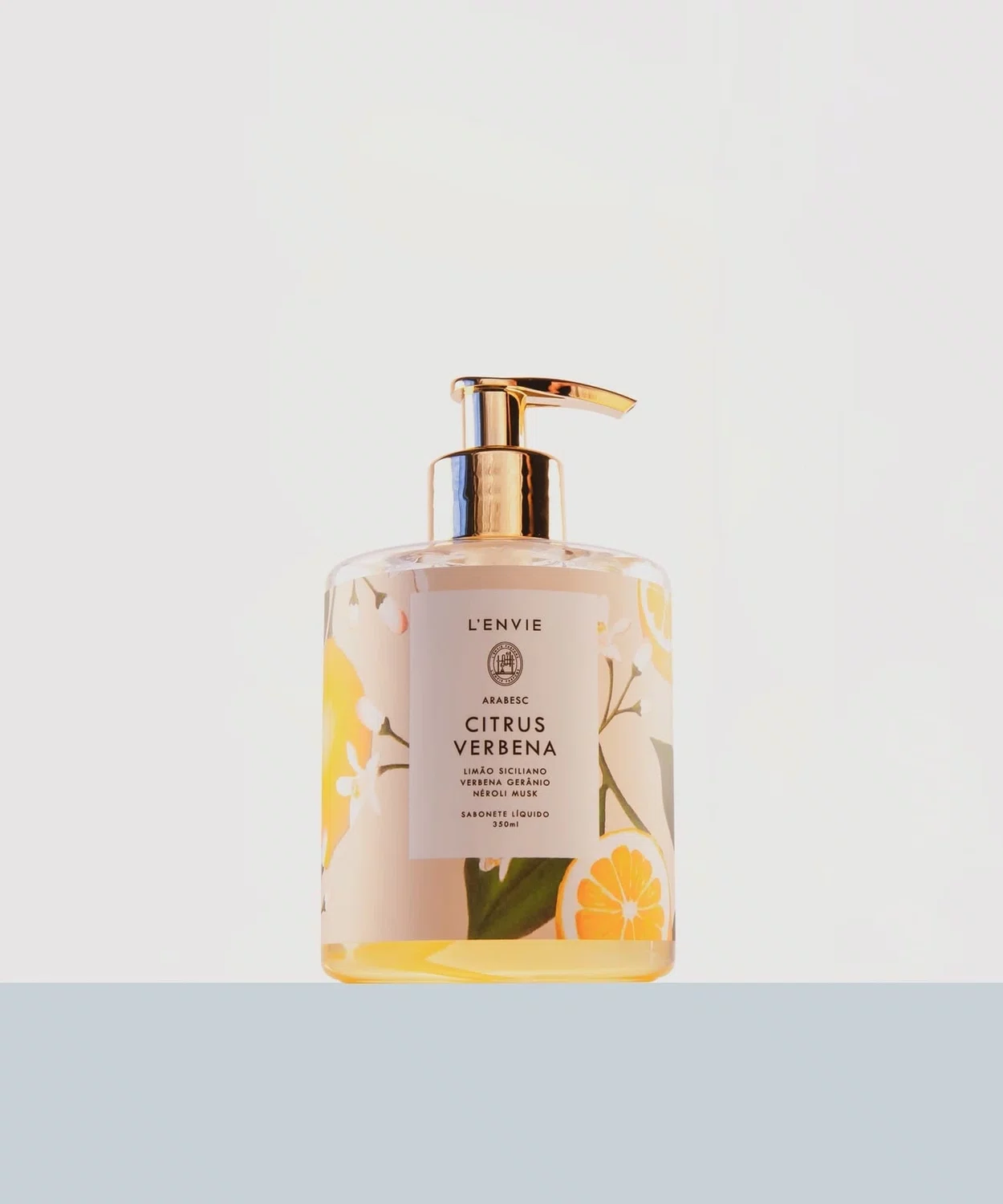 O Sabonete Líquido Citrus Verbena 350ml é indicado para todos os públicos e pode ser utilizado na lavagem das mãos e corpo. Sua fragrância é marcante, oferecendo uma perfumação maior. As notas de saída possuem principalmente capim limão e limão siciliano, o seu corpo é composto por verbena e peônia, além de outras flores. Suas notas de fundo apresentam aromas amadeirados, como musk e cedro. Um aroma autêntico em uma embalagem moderna e refinada, sendo uma ótima opção para decorar a pia do seu lavabo. Com uma nova identidade visual a linha Arabesc traduz suas fragrâncias por meio de aquarelas desenhadas nas embalagens. As ilustrações foram feitas por Bella Mary O’Mahony, ilustradora neozelandesa apaixonada pela natureza.