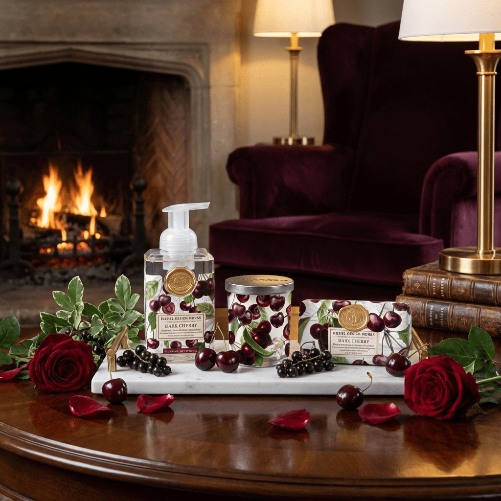 As cerejas escuras dão o tom da coleção Dark Cherry, que combina intensidade e romantismo. Sobre um fundo claro, as frutas ganham destaque em uma composição vibrante, elegante e cheia de personalidade. O visual exuberante e o perfume frutado transformam qualquer ambiente com um toque sofisticado e envolvente.