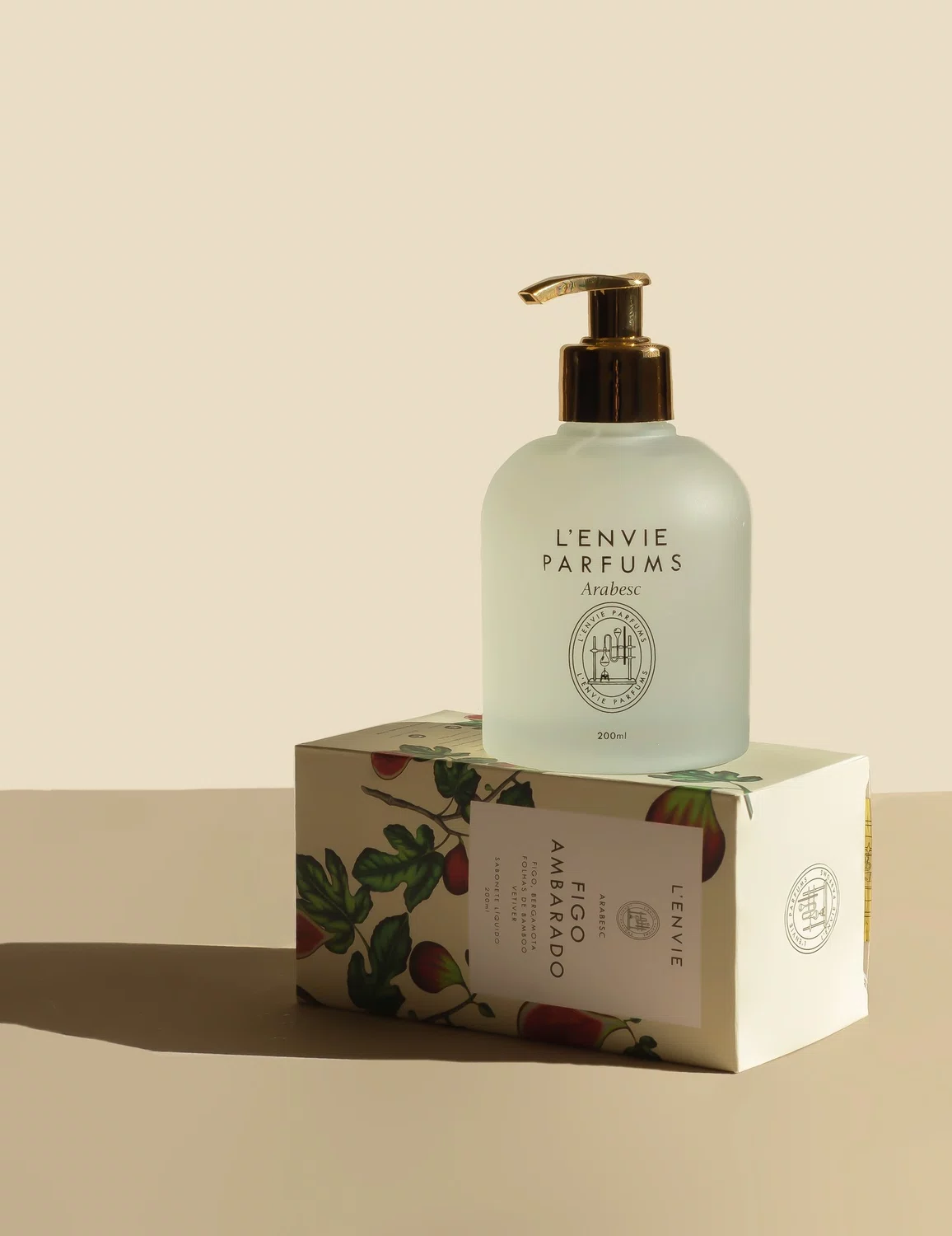 O Sabonete Líquido Figo Ambarado 200ml é indicado para todos os públicos e pode ser utilizado na lavagem das mãos e corpo. Sua fragrância é marcante, oferecendo uma perfumação maior. Suas notas são figo, bergamota, folhas de bamboo e vetiver. Um aroma autêntico em uma embalagem moderna e refinada, sendo uma ótima opção para decorar a pia do seu lavabo. Com uma nova identidade visual a linha Arabesc traduz suas fragrâncias por meio de aquarelas desenhadas nas embalagens. As ilustrações foram feitas por Bella Mary O’Mahony, ilustradora neozelandesa apaixonada pela natureza.