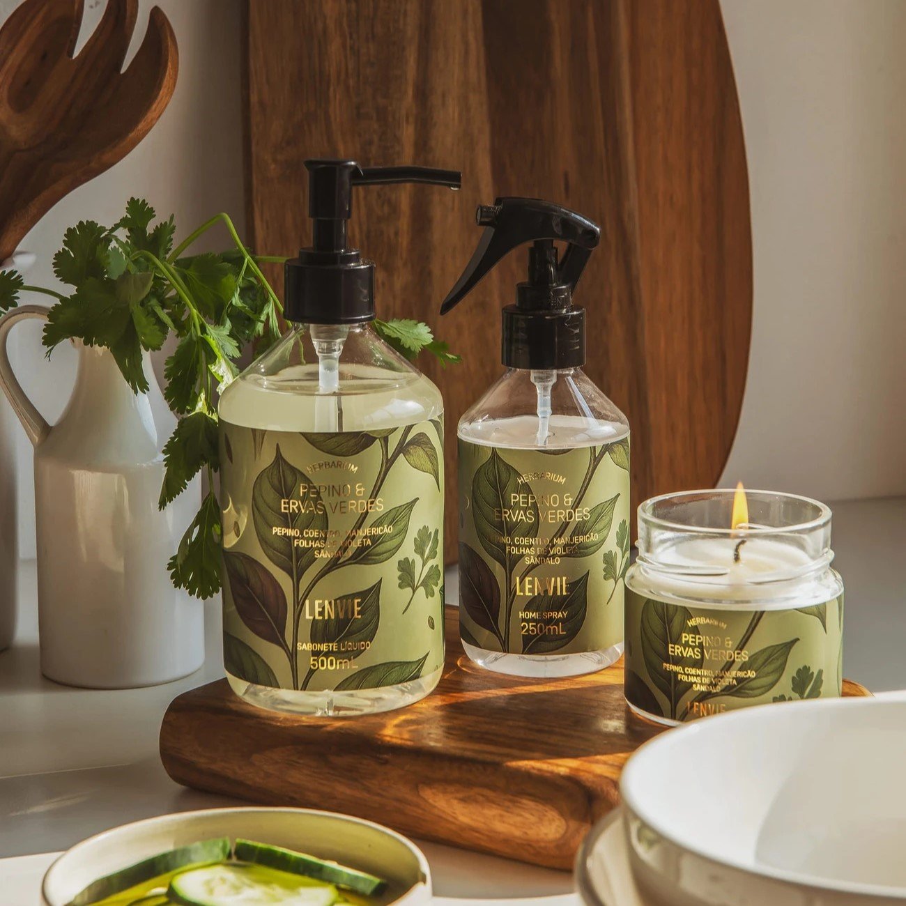 Herbarium é uma coleção exclusiva inspirada na simplicidade e no frescor das ervas cultivadas em jardins e hortas. O Sabonete Líquido Pepino e Ervas Verdes foi desenvolvido para proporcionar uma limpeza delicada, deixando a pele macia e levemente perfumada. Sua fragrância combina o frescor do pepino com notas verdes, criando uma sensação refrescante e agradável a cada uso. Com textura suave e fácil de espalhar, ele forma uma espuma leve que limpa sem ressecar, sendo ideal para o uso diário. Além do cuidado com a pele, o produto também contribui para manter o ambiente perfumado de forma sutil, graças à tecnologia NeoFresh, que auxilia na neutralização de odores indesejados.