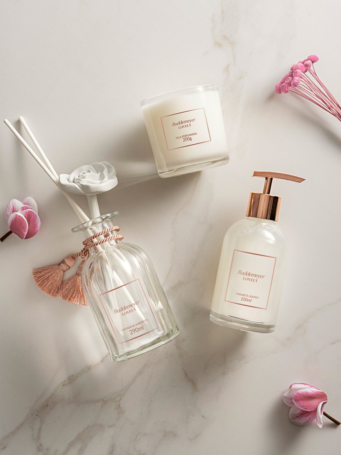 Lovely combina suavidade e encanto, com notas de frutas frescas e flores delicadas que criam uma atmosfera acolhedora e feminina. Seu design exclusivo com varetas de gesso artesanais garante uma difusão suave do aroma, transformando cada momento em uma celebração de feminilidade