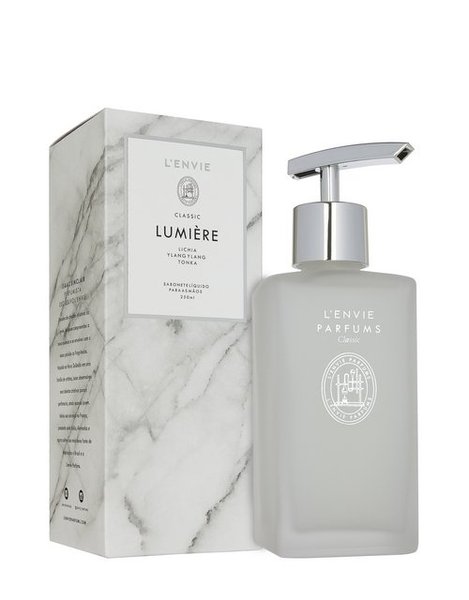 O Sabonete Líquido Lumière 250ml é indicado para todos os públicos e pode ser utilizado na lavagem das mãos e corpo. Sua fragrância é marcante, oferecendo uma perfumação maior. Possui em suas notas a mandarina italiana e pêra, combinado ao aroma de cravo e toque de cedro de virgínia em suas notas de fundo. Esta fragrância é inspirada na luz do Sul do Pacífico, que fascinava artistas europeus e tentavam reproduzir os efeitos de luz em suas pinturas. Lumière cria uma energia vibrante em uma sinfonia envolvente. Um aroma autêntico com embalagem moderna e refinada, ótima opção para decorar a pia do seu lavabo.