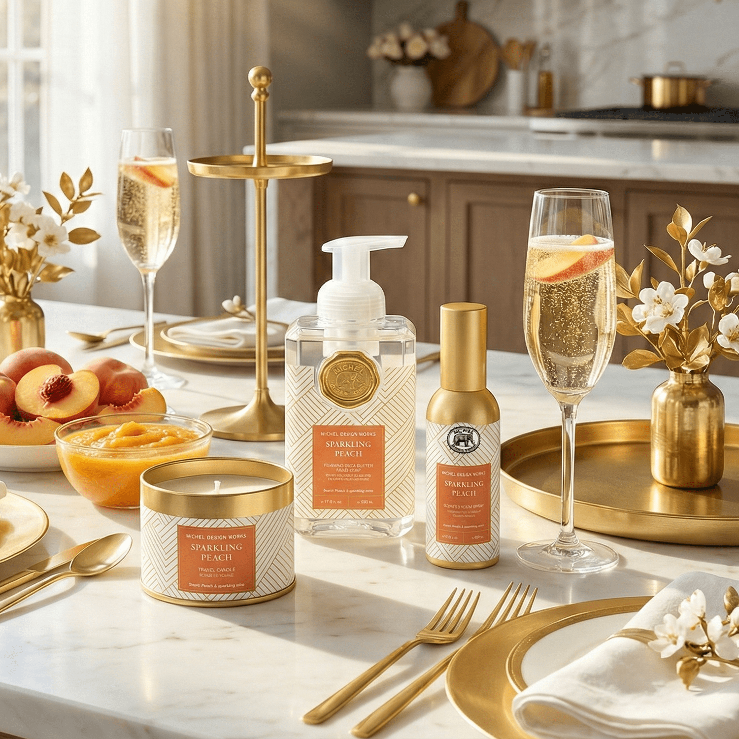 Sparkling Peach traz uma fragrância doce na medida certa, cremosa e frutada, que remete à sensação de um drink refrescante servido ao fim da tarde. O aroma combina purê de pêssego com um toque de vinho espumante, deixando as mãos delicadamente perfumadas e com sensação de frescor prolongado.
