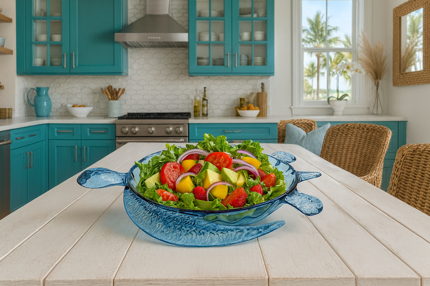 Saladeira Acrílico Tartaruga Azul 45 cm