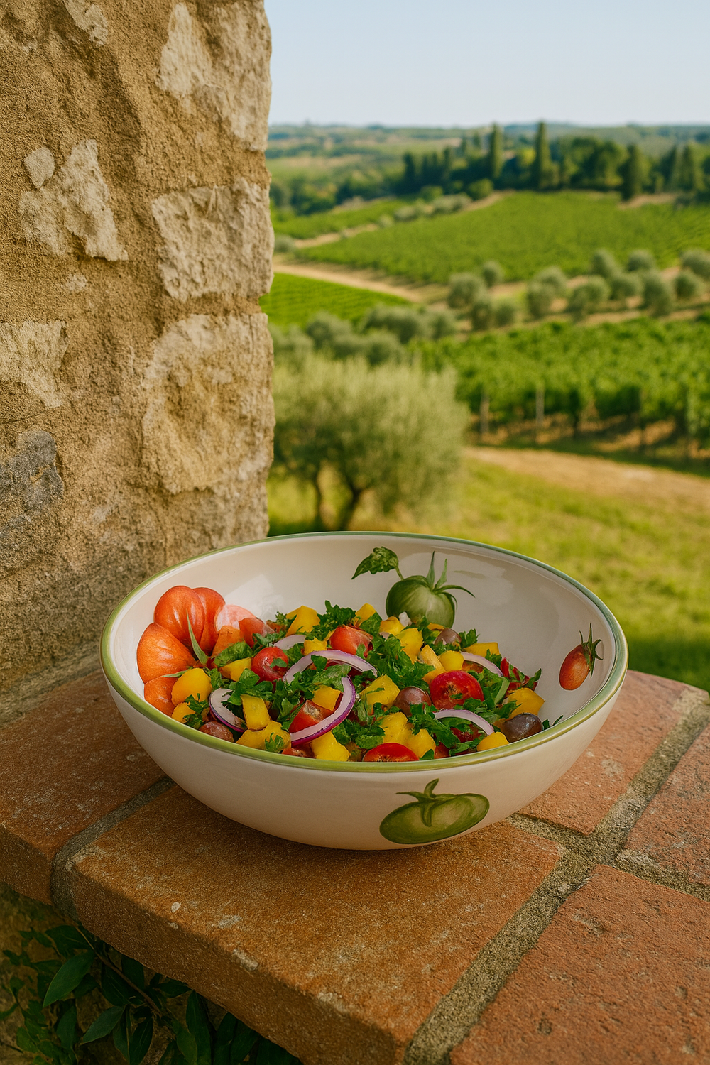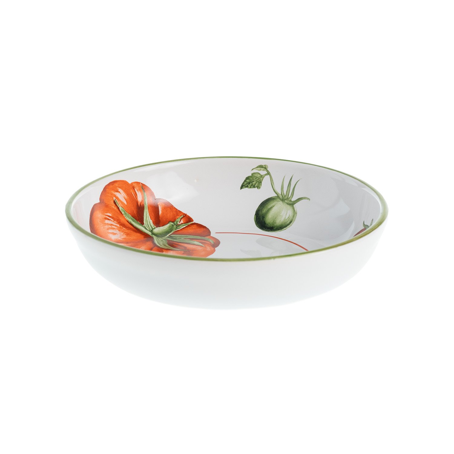 Saladeira pequena, que também pode ser utilizado como bowl para massa ou outras porções. Produzida em cerâmica artesanal com pintura manual nas cores verde e vermelho.